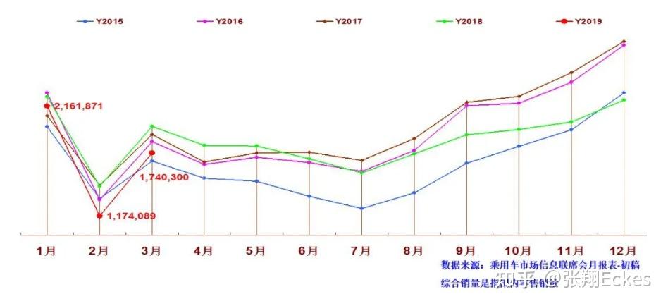 下图是2015-2019年的汽车月度销量情况,可以看出,2月份/7月份前后买车的人最少,算是淡季。下半年,9月份-次年1月份,算是旺季。据说,一般而言汽车销量淡季和旺季对价格的影响很小。