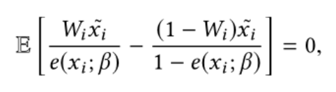 IPW方法的倾向得分其实是策略的倾向选择概率,但是选择性偏差带来的是样本之间其他相关变量分布的不平衡。所以使用逆倾向得分属于只考虑了策略的倾向选择概率,却用来平衡样本之间其他相关变量的分布。Covariate balancing propensity score (CBPS),协变量平衡倾向得分方法被设计出来来同时衡量这两方面,来使倾向得分更准确。CBPS得到倾向得分的方式是求解下面的方程: