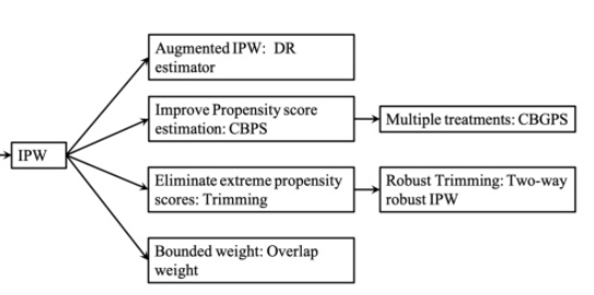IPW需要样本权重主要围绕倾向的分为核心,倾向得分一旦预测不准,会导致上面的估计方法出现很大的偏差。