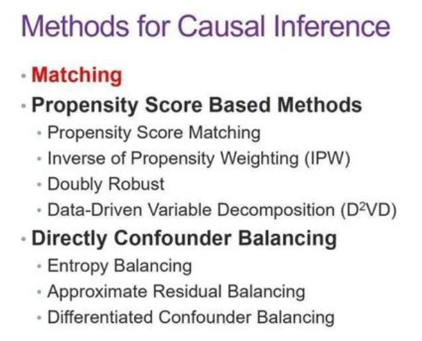 在rubin的理论下, 在观测数据下,为了给实验组寻找合适的对照组,或者消除对照组的影响,有非常多种方式,其中包括: