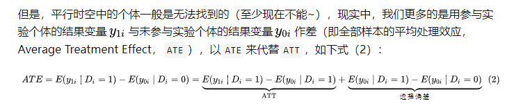 ATT:参与者平均处理效应(Average Treatment Effect on the Treated,ATT) ATE:全部样本的平均处理效应,Average Treatment Effect,ATE)