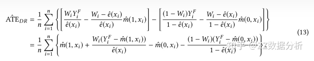 为了解决样本权重过度依赖倾向得分准确性的问题, 大佬又提出了Doubly Robust estimator (DR)方法或者成为增强IPW(AIPW)。 DR方法具体做法类似于鸡蛋不放在一个篮子里的投资方法,它结合倾向得分和结果回归模型来得到样本权重,其具体做法如下: