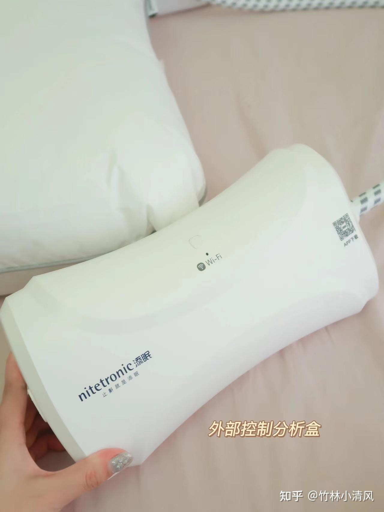 Nitetronic添眠智能止鼾枕=MEMS的鼾声传感器+1个控制盒+6组压敏位置传感器+6组柔性气囊+10年调教睡眠APP+2块天然乳胶枕芯+一片纯棉羽丝绒枕套