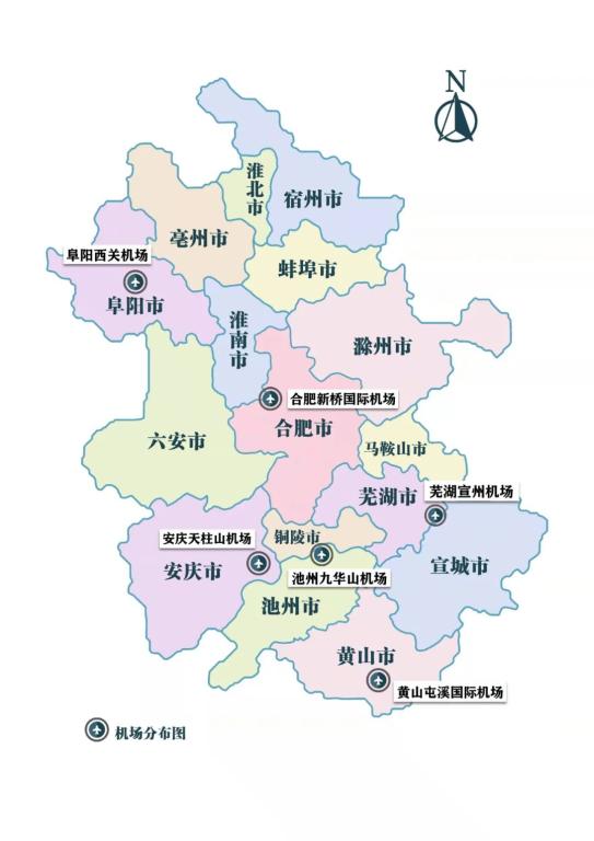 布局不尽合理“分流”。安徽现有的6个民航机场分别在合肥、黄山、阜阳、池州、安庆和芜湖,除了皖北的阜阳,其余4个城市都地处安徽中南部,呈现出总量不多且南多北少的状况。安徽人口排名前5的城市中,阜阳、宿州、亳州均位于皖北地区,皖北六市占据全省人口的43.95%,至今却只有一座阜阳机场;而皖南六市则以占全省人口20.14%的份额拥有了芜宣、屯溪、九华山三座机场。特别是屯溪机场所在的黄山市和九华山机场所在的池州市常住人口数量在全省位列倒数第一和第二。由于机场地理位置与周边交通配套不完善,机场难以吸引邻近城市客流,这又使航司运能投入意愿不足,进而导致客流增长乏力与航线投放、运输票价高企陷入了恶性循环。安徽的民航机场分布与其人口分布不协调,地域分布不均衡,自然难以完全吸引省内旅客,尤其是近年来加速发展的皖北地区至今只有一家机场难以满足区域内旅客出行需求,这又为邻省机场“伸手”抢夺安徽民航市场提供了机会。