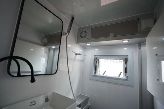 车身四周外市电系统功能齐全,其它方面包括进口CAMPO房车专用3.5米电动遮阳棚、重力注水口、外置淋浴器、3KW静音发电机、1650W单晶高效太阳能板、1600Ah磷酸铁锂电池(含充电机)、德国纽