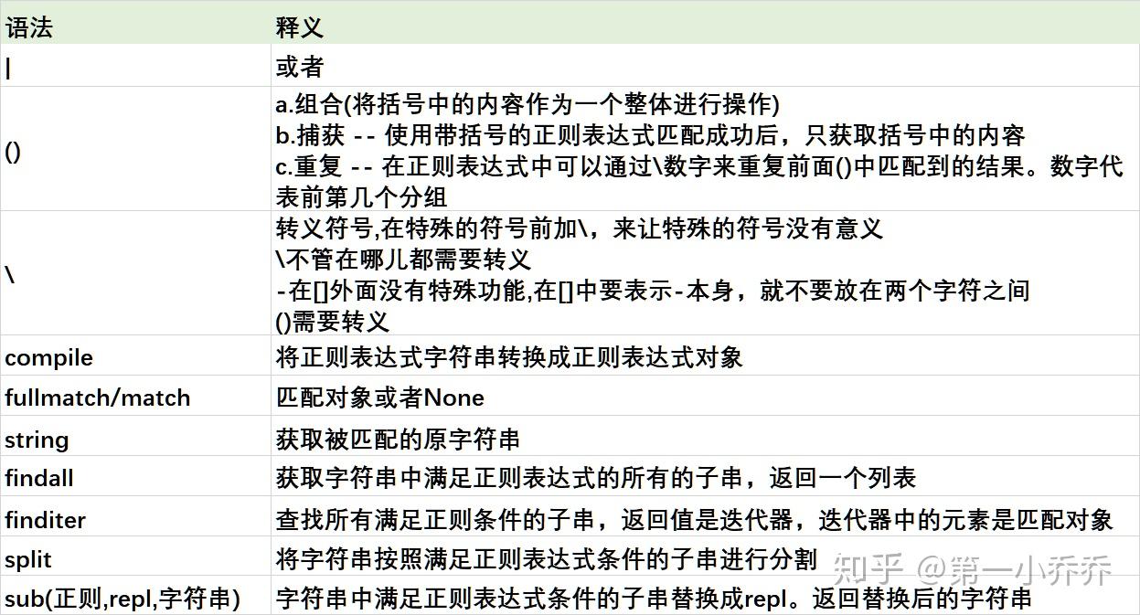 Python中通过re模块中相应的方法来支持正则表达式的匹配、查找和替换等功能