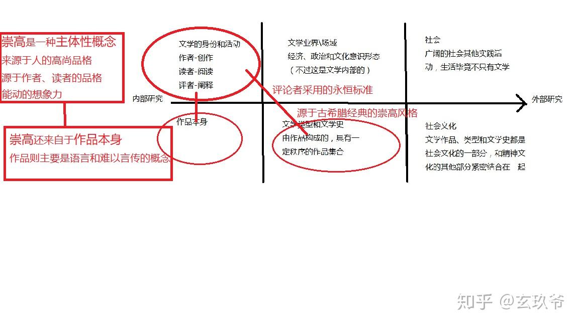就文学的主体性活动而言,包括三者,创作活动、欣赏活动和评论活动,其又创设的三种身份,作者读者和评者。朗基努斯所谓崇高正是从这三种方面的主体性来说的,就像那句名言,“崇高就是伟大心灵的回声”。由此,崇高即为某种主体间共识的概念,而其之所以能达到三种身份的主体间共识,是因为经过了作品这一客体的中介。