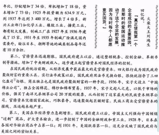 旧中国为什么帝国主义资本如此猖狂,说到底还是因为旧中国主权被外国侵蚀的结果,新中国中国人主权在手,民族工业则突飞猛进,可见主权对民族工业发展是多么重要,这才是一本正常的教科书。