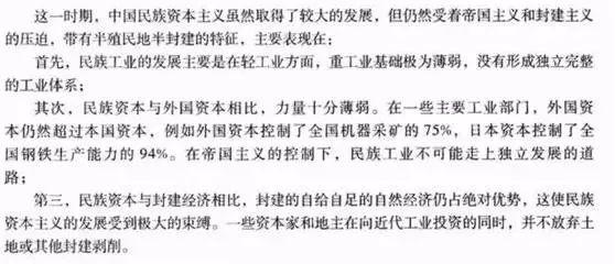 下面是教科书对北洋军阀时期中国工业的评价,明显民族工业才是教科书看中的根本,非常简单,没有民族工业的强大,外国资本在中国土地上设立再多工厂,中国也不可能成为强大国家。