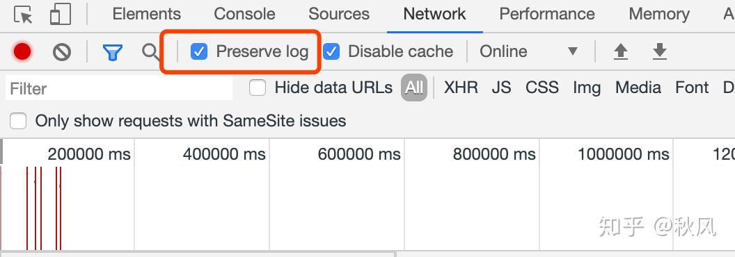 我们打开控制台,由于表单提交会进行网页跳转,因此我们勾选