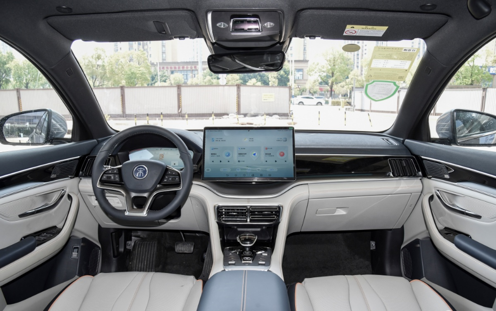 进入车内,宋PLUS DM-i和玛奇朵DHT PHEV都营造出了不错的豪华感,前者采用的是王朝家族设计语言,整体简洁前卫,内嵌式12.3英寸液晶仪表盘以及15.6英寸的可旋转悬浮式中控屏幕几乎集中了所有功能,科技感十足。