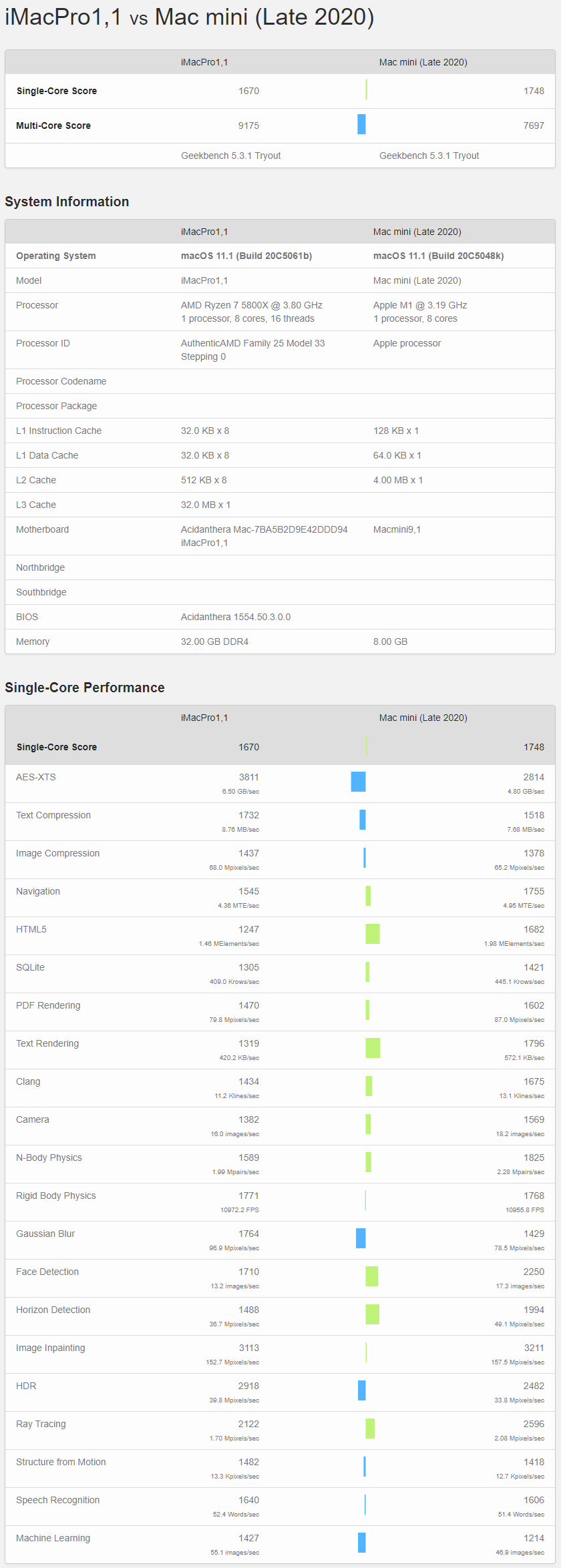 - ^ Geekbench:iMacPro1,1 vs Mac mini (Late 2020) - Geekbench Browser https://browser.geekbench.com/v5/cpu/compare/5413151?baseline=4931678
