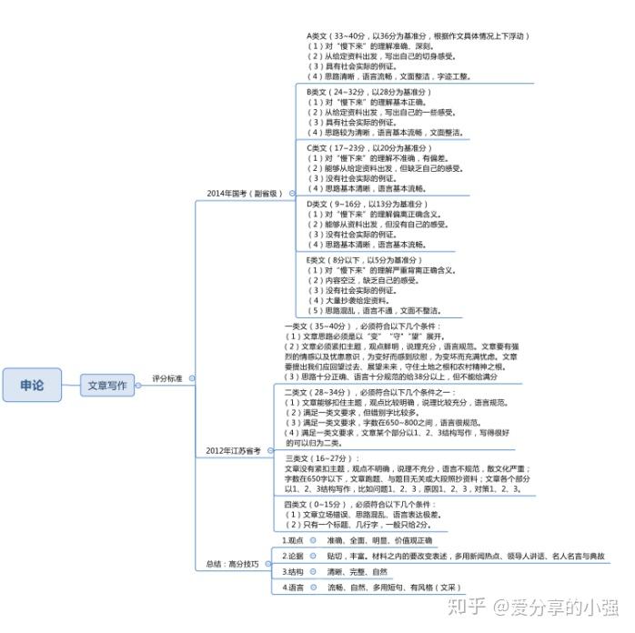 这完全是误解,大作文分数很难拉开差距,高分和低分一样少,大家都在平均分左右。这既是因为按类给分的作文判卷标准,也和两人阅一题的阅卷规则有关。所以能写出中规中矩、符合题意的文章,就不用担心大作文会给你拉分。反而小题部分因为按点给分,每一个题点都有明确的分数,才会拉开分差,才有着重复习提升的价值。
