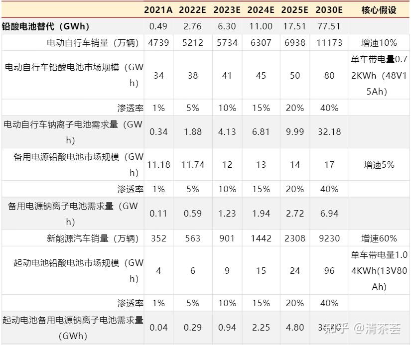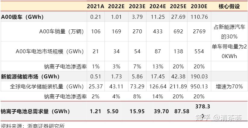 预计2025年钠离子电池需求总量可以达到88GWh,2030年钠离子电池需求可以达到378GWh。