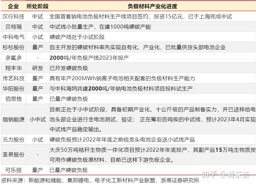 - 华阳股份2000吨/年钠电池负极材料项目已于 2022 年 3 月投产;