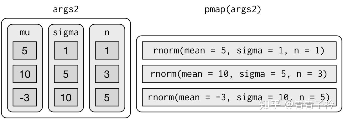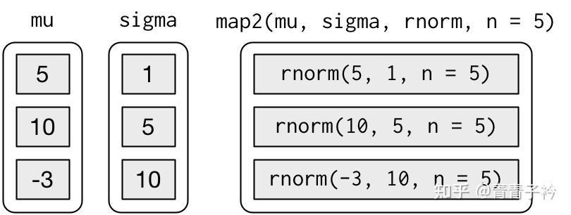 map(-2:2, rnorm, n = 5)有什么作用?为什么?map_dbl(-2:2, rmrm, n = 5)有什么作用?为什么?