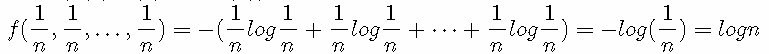 证明 0≤H(X)≤logn 利用拉格朗日乘子法证明: 因为 p(1)+p(2)+⋯+p(n)=1 所以有: 目标函数:f(p(1),p(2),…,p(n))=−(p(1)logp(1)+p(2)logp(2)+⋯+p(n)logp(n)) 约束条件: g(p(1),p(2),…,p(n),λ)=p(1)+p(2)+⋯+p(n)−1=0 1) 定义拉格朗日函数: L(p(1),p(2),…,p(n),λ)=−(p(1)logp(1)+p(2)logp(2)+⋯+p(n)logp(n))+λ(p(1)+p(2)+⋯+p(n)−1) 2) L(p(1),p(2),…,p(n),λ)分别对 p(1),p(2),p(n),λ求偏导数,令偏导数为 0: λ−log(e⋅p(1))=0 λ−log(e⋅p(2))=0 ………… λ−log(e⋅p(n))=0 p(1)+p(2)+⋯+p(n)−1=0 3) 求出 p(1),p(2),…,p(n)值:解方程得,p(1)=p(2)=⋯=p(n)=1/n代入 f(p(1),p(2),…,p(n)) 中得到目标函数的极值为: