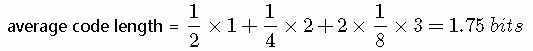 我们可以看到, 非均匀分布比均匀分布的熵要小 。现在让我们考虑如何把变量状态的类别传递给接收者。与之前一样,我们可以使用一个2比特的数字来完成这件事情。然而,我们可以利用非均匀分布这个特点, 使用更短的编码来描述更可能的事件,使用更长的编码来描述不太可能的事件 。我们希望这样做能够得到一个更短的平均编码长度。我们可以使用下面的编码串(哈夫曼编码):0、10、110、111来表示状态 {a,b,c,d}。传输的编码的平均长度就是: