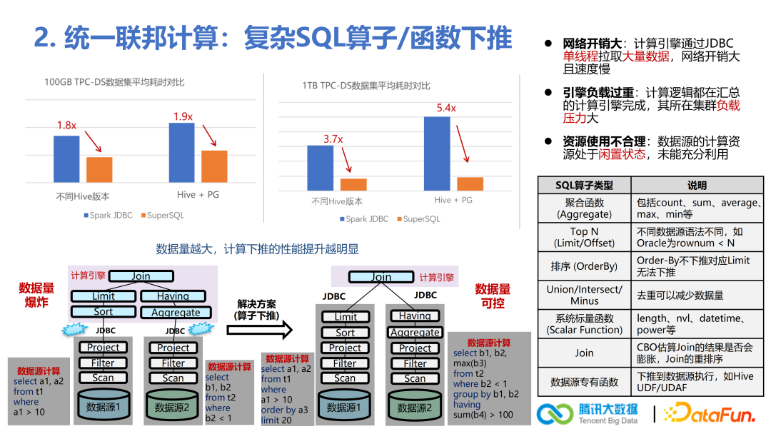 2. 统一联邦计算:复杂 SQL 算子/函数下推