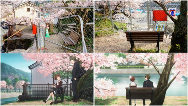 第一集中久美子和秀一相遇的长凳,在樱花季分分钟让人少女心爆炸: