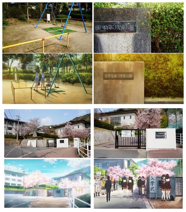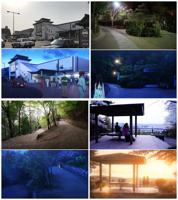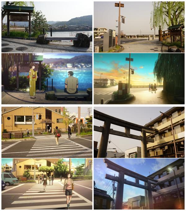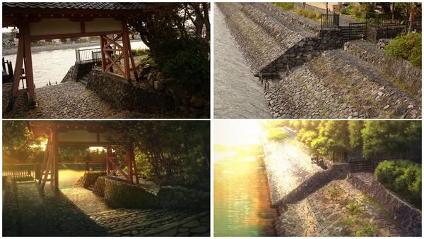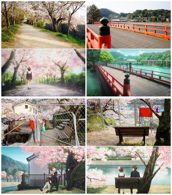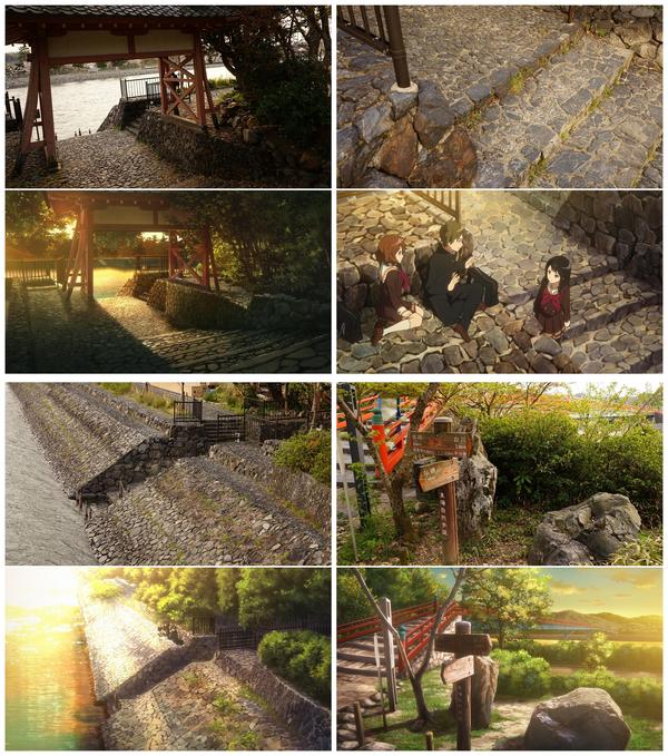 动画中类似的外景不少都集中在风景秀丽的宇治川两岸,一般都是主角在放学后促膝长谈的场所,虽然往往不会发生什么重要剧情,但却是描绘和体现高中生日常生活不可或缺的舞台。