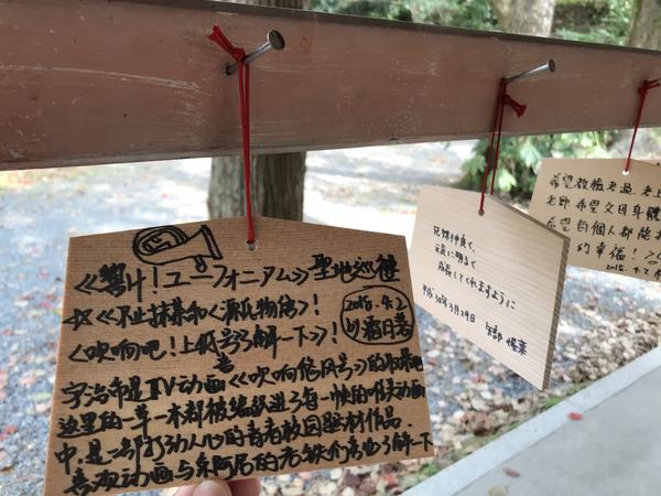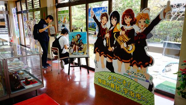 去年在岐阜县的飞騨市巡礼《你的名字》时,就在大街小巷看到了不少动画的元素,但多少也有些意犹未尽,毕竟飞騨市在电影中的戏份并不多。但作为集中了所有取景地的故事舞台,宇治市内丰富的“京吹元素”,则让我真切地感受到了一部动画给一座日本的城市带来的浓厚印记。
