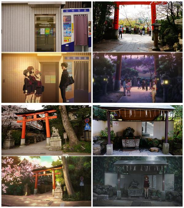 神社算是动画和日剧中出现频率最高的建筑之一,大概是混合了古典、浪漫与神秘气息的缘故,故而许多作品中都会讲标志性的神社作为承载重要剧情的场景。《你的名字》中,泷与三叶在东京相遇的须贺神社作为命运的邂逅舞台,完全是偶然的、非日常的。而京吹中出现的神社所展现的则是日常的一面,即作为主角们生活的一部分自然地融入背景之中,不会留给人太深刻的印象,但却也是烘托剧情必不可少的调味料。