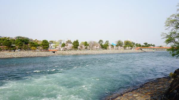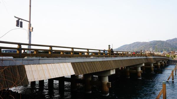 因为刚好位于支流汇入宇治川的位置,所以被冠以观流桥之名,站在桥上就可以看到脚下的急流。