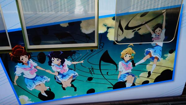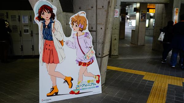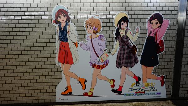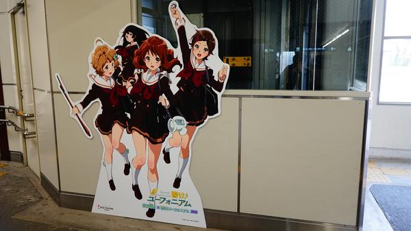 买了一张宇治线的一日券后,在巡礼的路上就顺便集齐了4块展板。宇治站的久美子&绿私服: