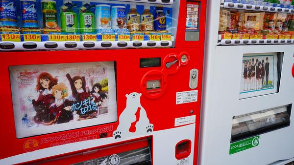 校门口的自动贩卖机上也贴着京吹的宣传图片: