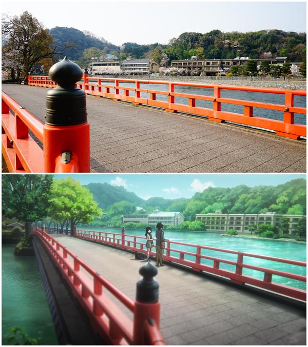 和京都的鸭川一样,宇治也被一条南北向的宇治川分为东西两个区域,横跨宇治川的主要桥梁就是宇治桥,也是主角们上学与放学路上经常会经过的区域。