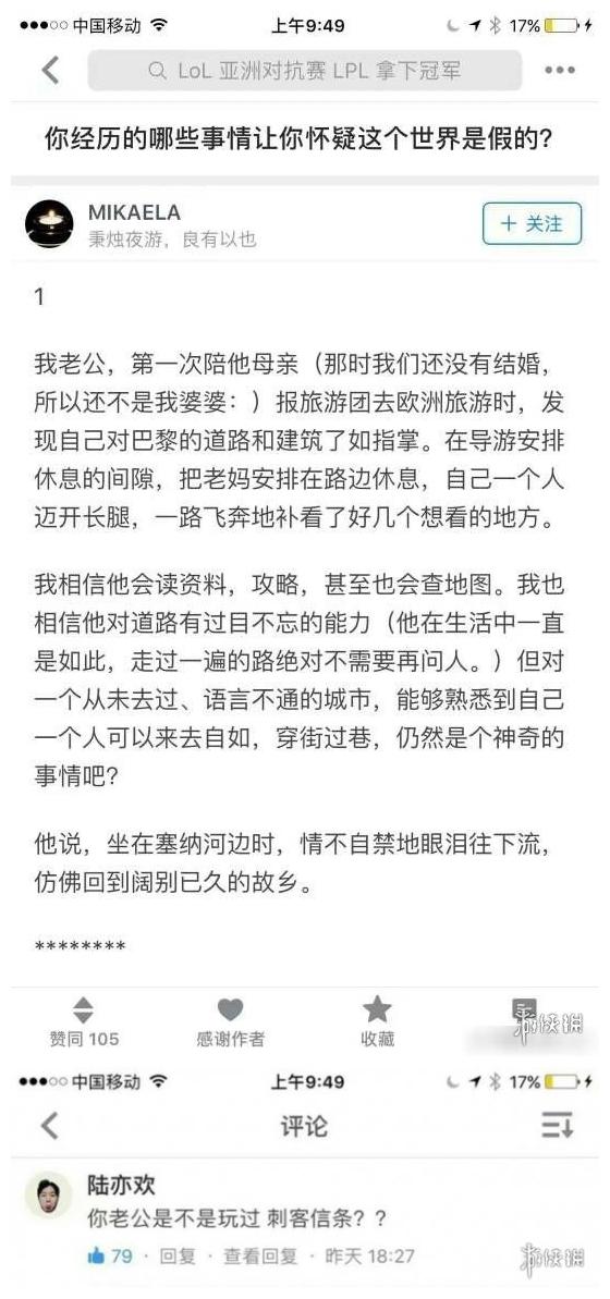 评论一语道出真相:你老公是不是玩过刺客信条?