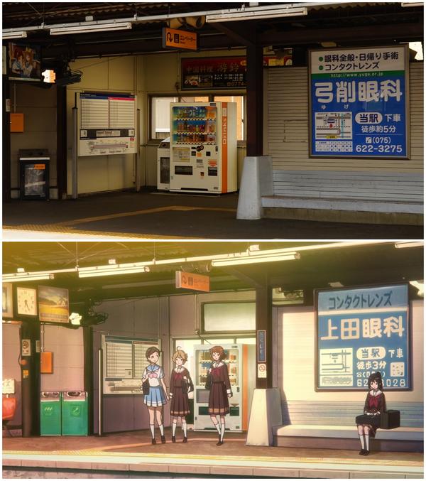 动画中,久美子一行往返学校利用的交通线路是京阪电车的京阪宇治线,一共有八个站,而出现最多的车站有三个:宇治站、黄檗站和六地藏站,经常在黄昏时作为回家的上下车地点出现。