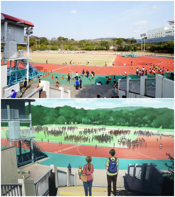 动画中出现的陆上竞技场这天刚好在举行运动会,成群结队的中学生在场地里奔跑与呐喊,因此也就没有走到场地中,加上这个运动公园相当地大,步行起来颇费时间,所以只拍了这一张全景照。