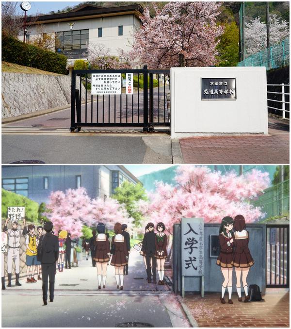 另外,原作者武田绫乃就读的高中并非是这所菟道高校,而是京都市的京都府立嵯峨野高等学校,小说中人物与故事的原型也是取材于自己在母校的亲身经历。当然实际创作中不可能让主人公从宇治跑到京都去上学,所以这所家乡的高中就成为了天选之校。