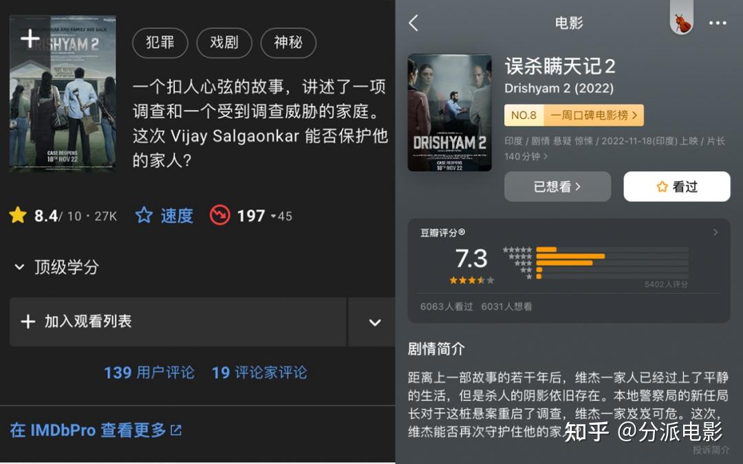 这里有一个小tip, 因为中国观众很少使用IMDB,而印度观众又超爱在IMDB上给自家电影刷分。