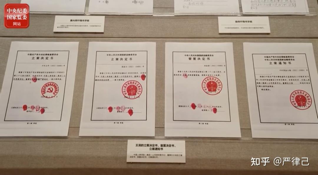 政知君还注意到,此次展览还公布了中国人寿保险(集团)公司原党委书记、董事长王滨的立案决定书、留置决定书和立案通知书。