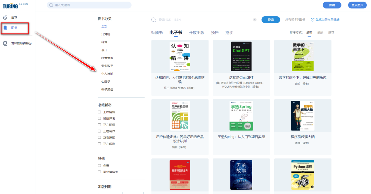 这个工具类网站 还提供了图书的借阅+下载渠道,主要的图书分类有:计算机、科普、设计、经营管理、个人技能等等 。