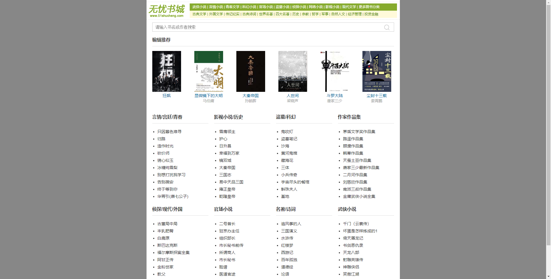 无忧书城网站内也有超多 免费小说 可以阅读,直接在线就能看,而且网站对小说书目类别划分的很细致,包括武侠、言情、科幻和侦探等,资源非常丰富。