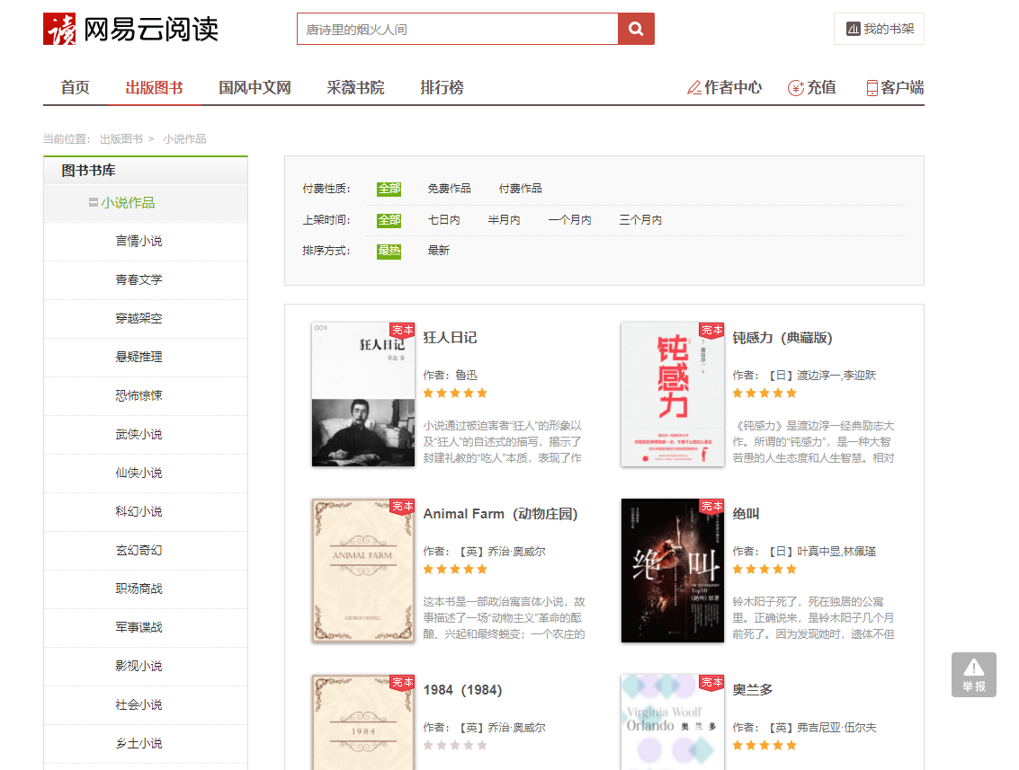 除了像哲学社科、传记历史这类的经典读物,它 还有网络文学专题,里面主要的都是一些爆火经典的网络小说。
