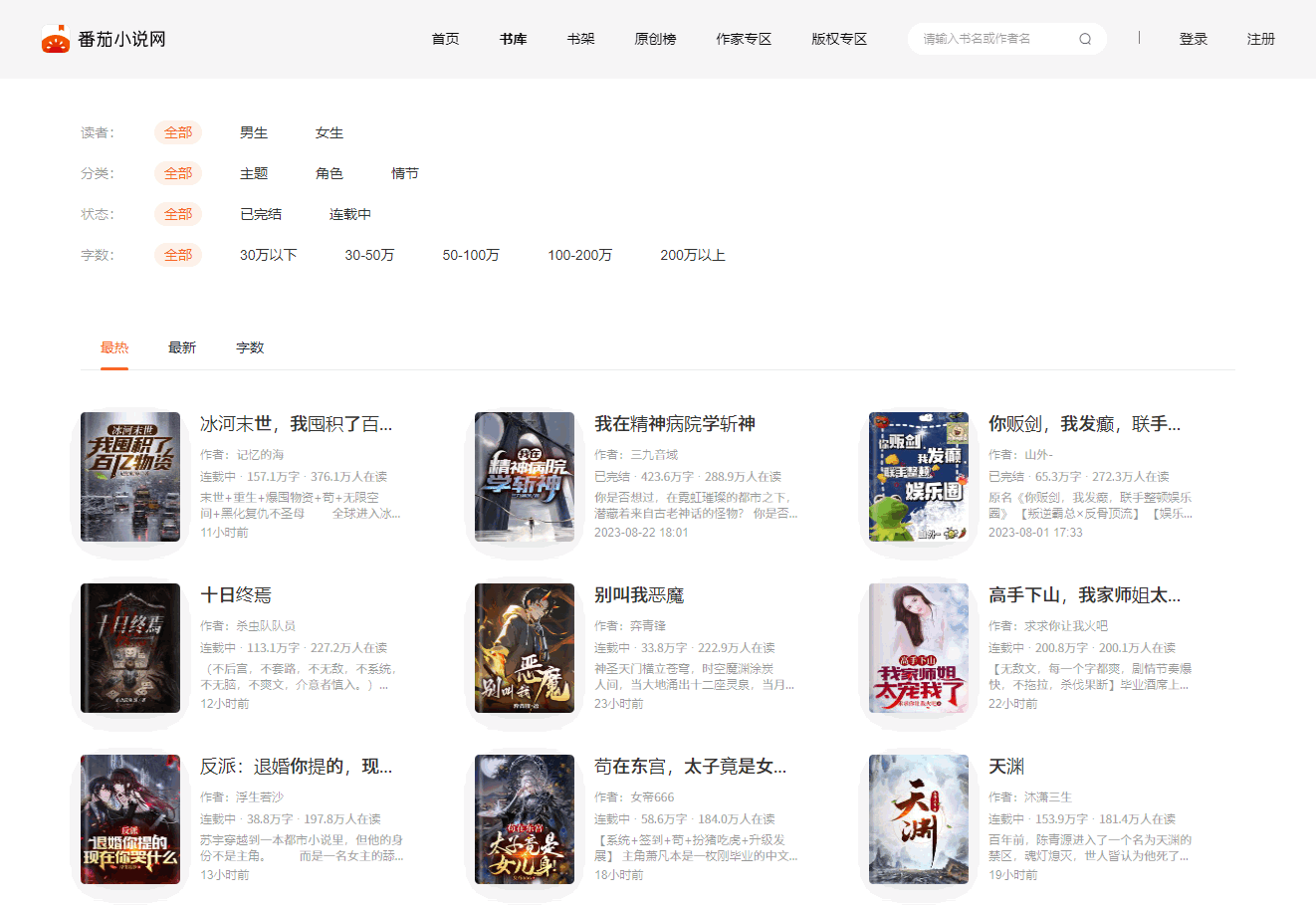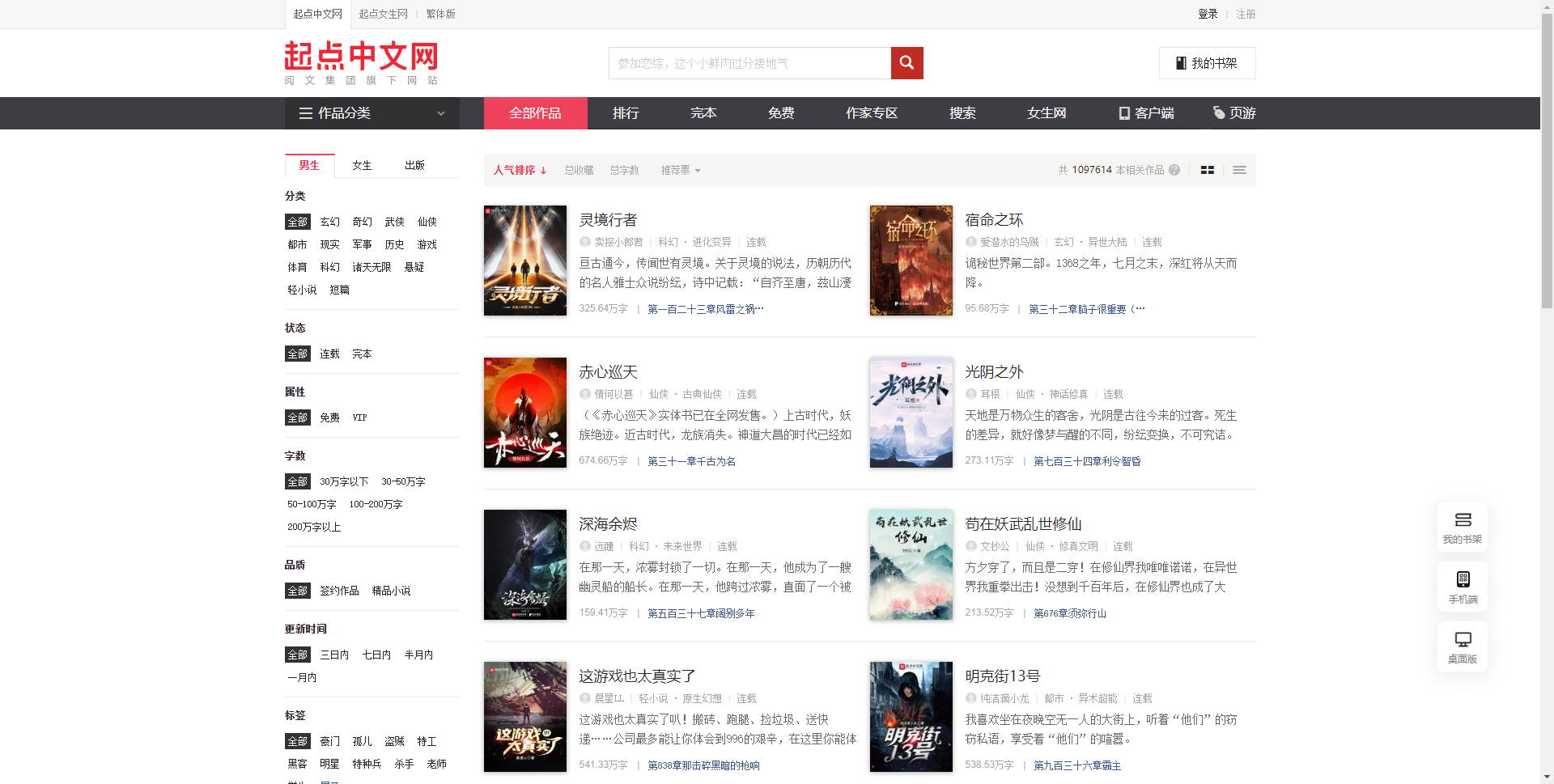 而且网站的分类非常详细,不仅 有各个类型的小说分类,还有根据人气、字数、受众等属性来归类小说,更方便让我们找到自己喜欢的书籍 。