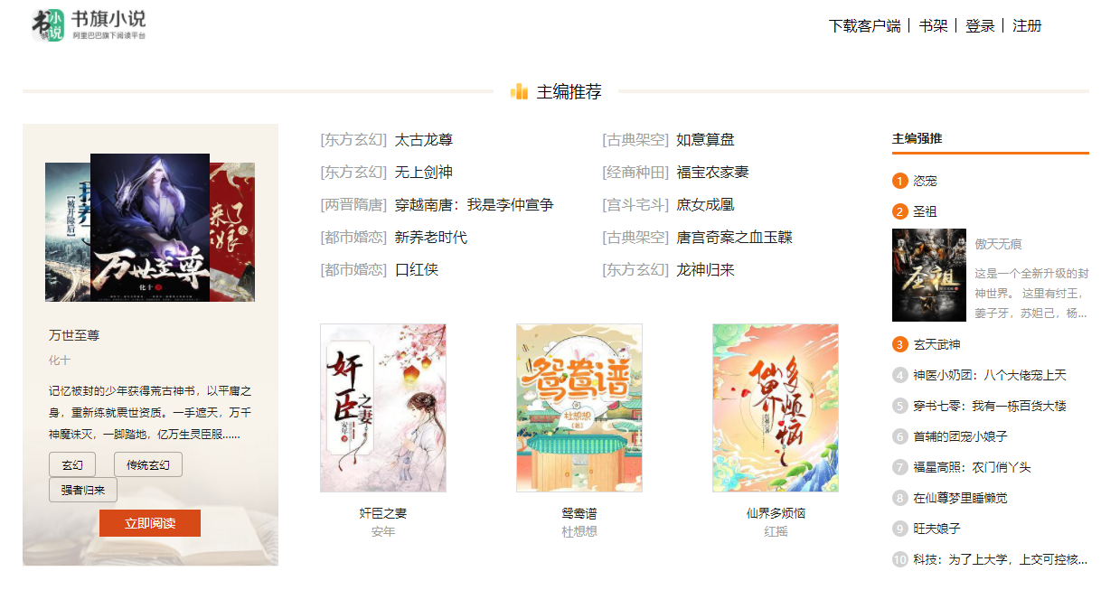 阿里旗下的阅读平台,不仅提供有网页端还有手机端可供阅读书籍。