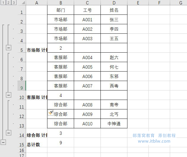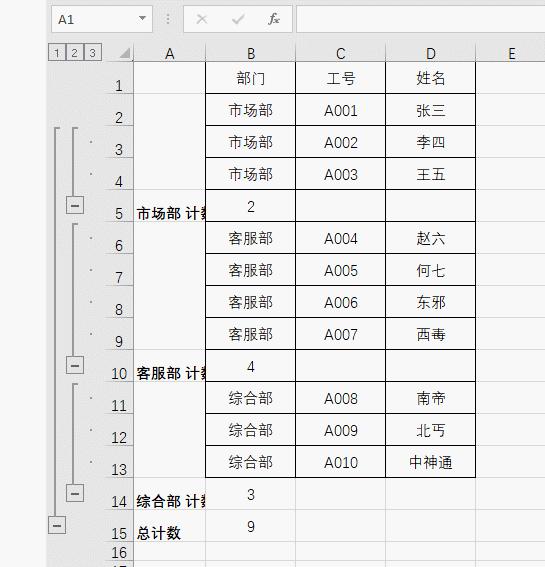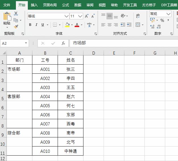 小美:“是这样的,我做了一个表格,领导说不好看,让我把相同的部门做成合并单元格。”如下图所示: