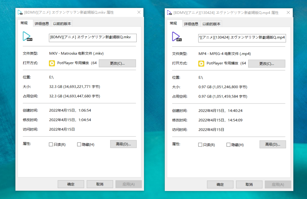 差友们可以简单对比下下面这两个视频,其中一个视频的大小为 32.3GB,另一个则只有 0.97GB,不知道你们能否分清楚哪个是压缩前哪个压缩后?