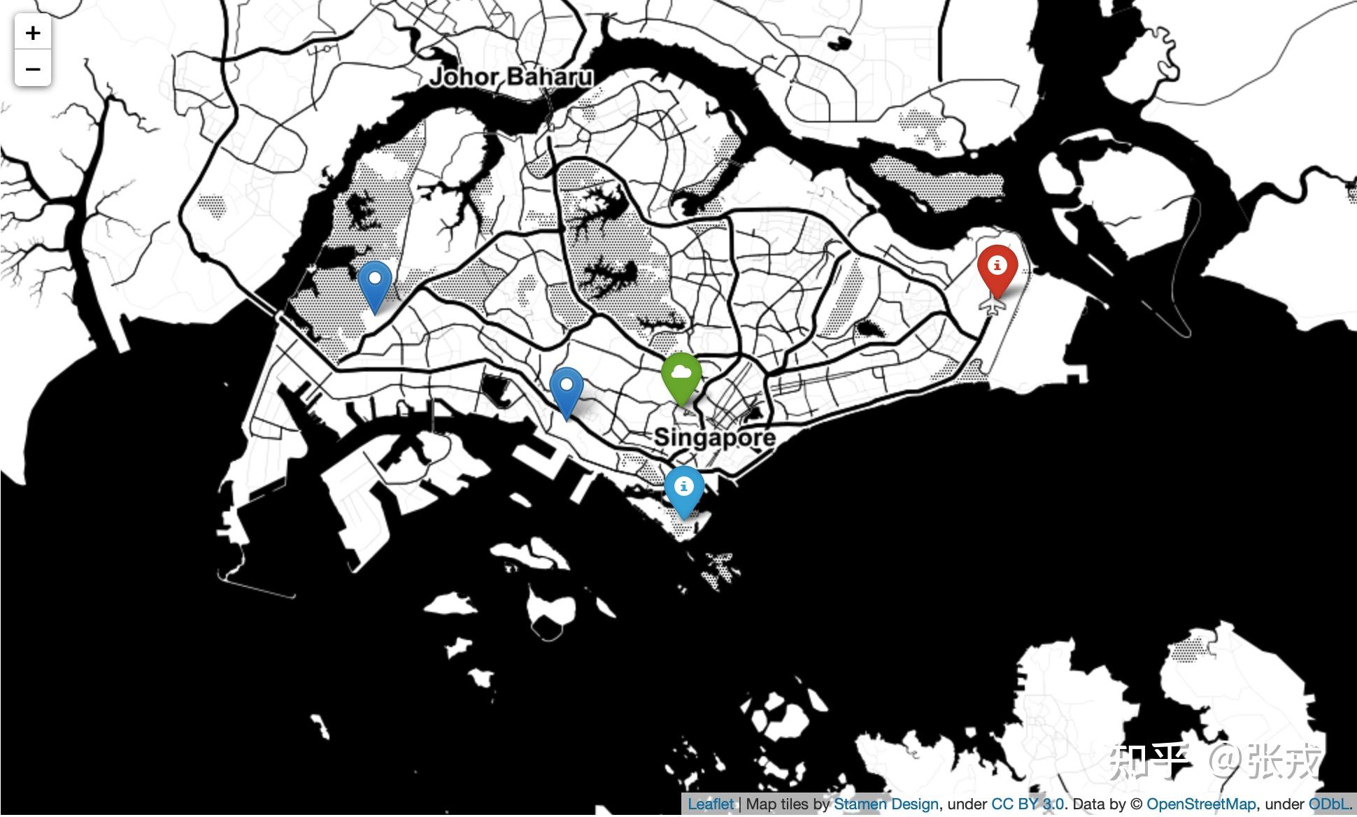 作为 Python 的一个可视化工具包 Folium,它通过 Leaflet 的地图服务,可以在 Jupyter Notebook 上实现可视化的地理位置作图,制作各种各样精美的地图信息。它不仅可以针对某个经纬度进行地理位置的可视化操作,还能够根据实时的人群地理位置信息来构建静态与动态热力图,甚至还能够针对经纬度的数量来进行必要的聚类可视化。本文将会基于新加坡的地图,对 Folium 的一些功能做简要的介绍,对此工具有兴趣的读者可以参阅 Folium 的官方文档。