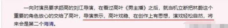 就像上面所说的,高叶作为演员在娱乐圈已经拍了很多年的戏了,虽然一直没有大火,但也算是稳扎稳打。