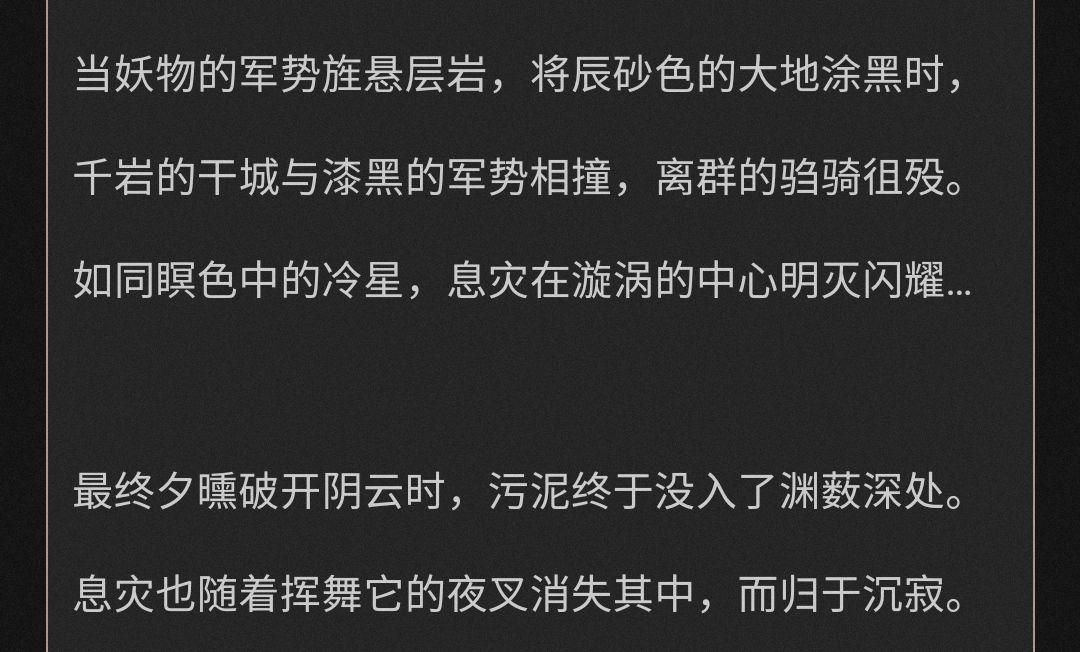 浮舍夜叉沉默地饮完苦酒,再次担负起他卸下来的责任,义无反顾地走向了深渊魔物,再也没有回来。