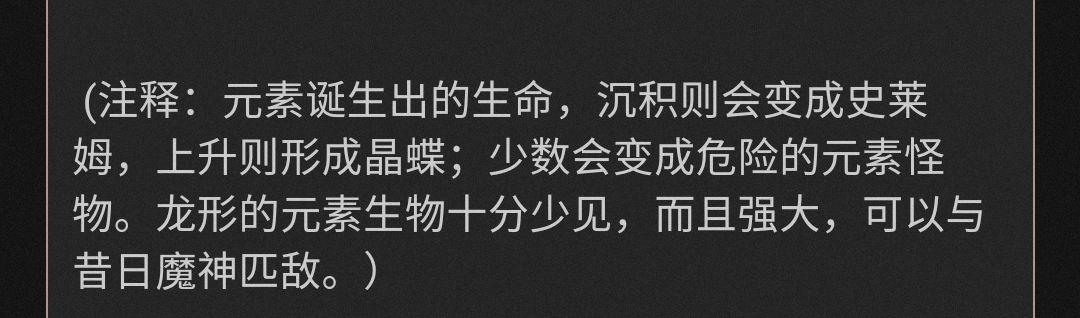 书籍《林间风》末尾有这样一个备注:提瓦特世界的元素本身就能诞生出生命,包括史莱姆、晶蝶、元素怪物如龙蜥乃至元素龙。