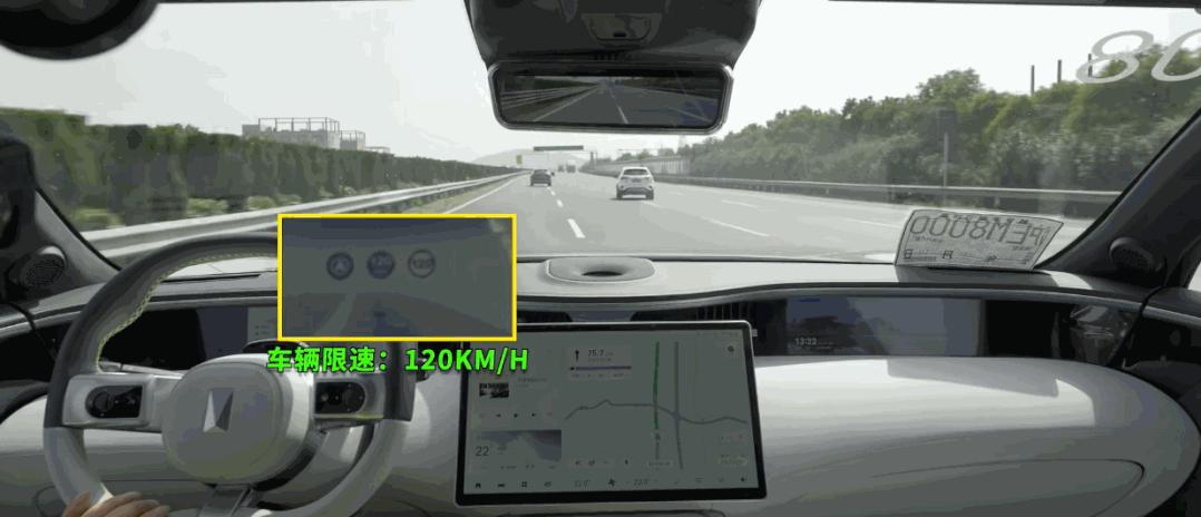 还有一个就是限速,主要针对高速场景。目前 NCA 的策略是严格按车道限速执行。比如三车道的情况下,第一车道(最左侧)限速是 120 km/h,第二车道限速是 100 km/h, 阿维塔 11 从第一车道切换到第二车道时时速也会变成 100 km/h。