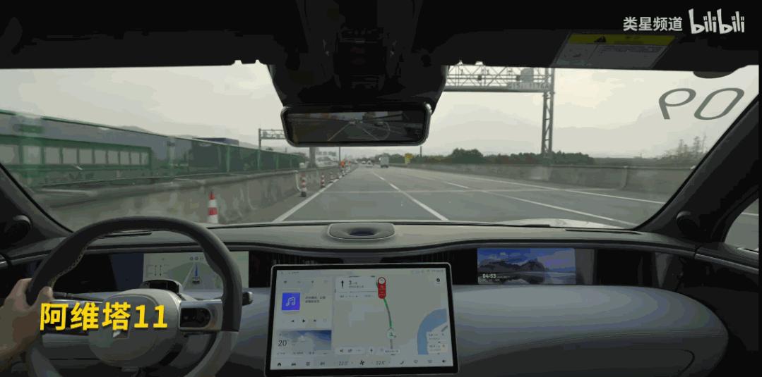 我遇到一个路口刚好在修路,所有的车道线都被抹掉了,但在阿维塔 11 的仪表盘可视化中,依然沿着高精地图里的车道线完成,规规矩矩,很有意思。而在之前的深圳之行中, 在进入深圳时高速在修路,地图已经飘走的情况下,阿维塔 11 依然可以完成驾驶,Amazing。